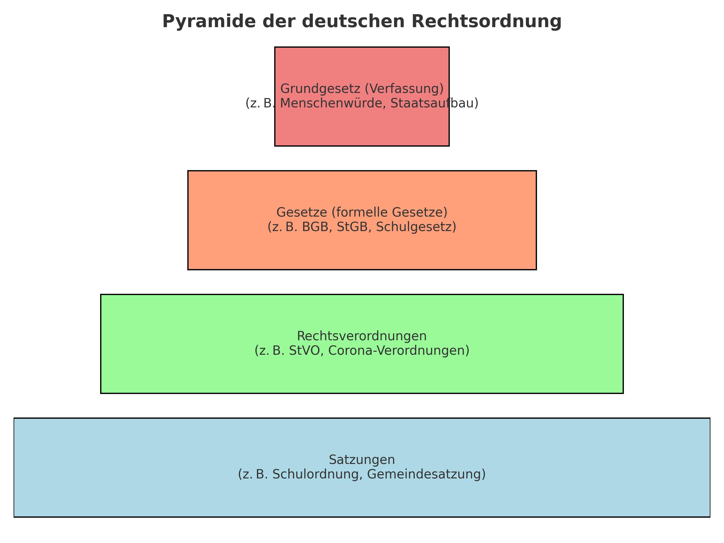 Die deutsche Rechtsordnung besteht aus verschiedenen Ebenen von Rechtsnormen, die sich in ihrer Rechtskraft unterscheiden: